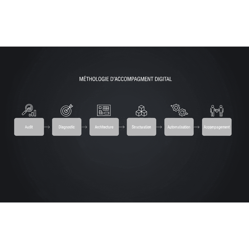 Audit → Diagnostic → Architecture → Structuration → Automatisation → Accompagnement